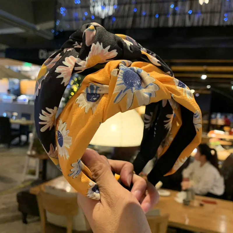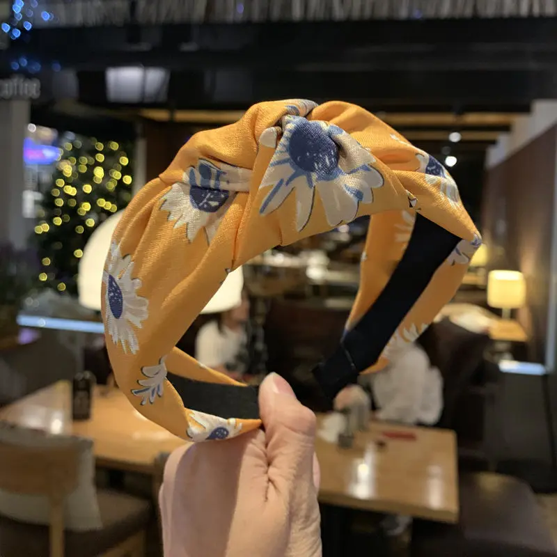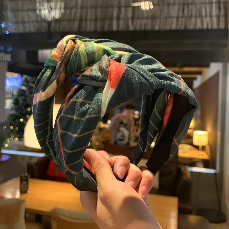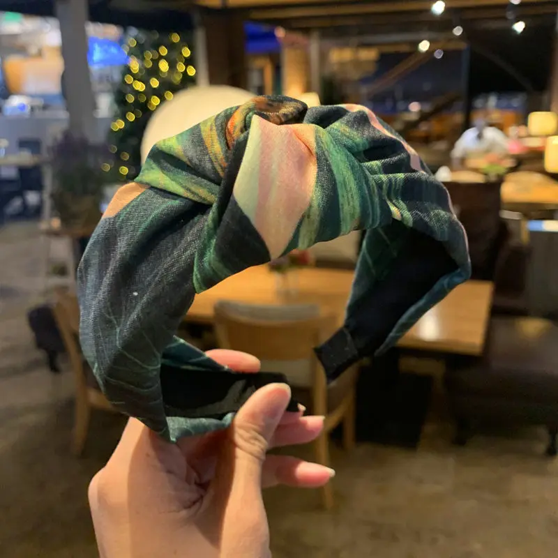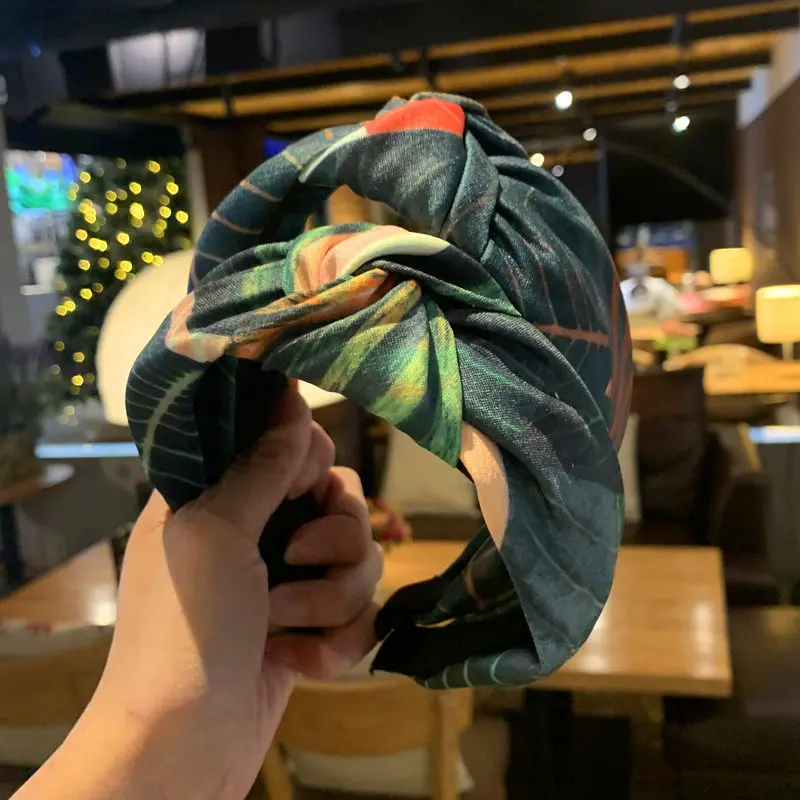 Женская винтажная повязка на голову, обруч для волос с цветочным принтом и листьями, аксессуар для волос в стиле ретро, 2019