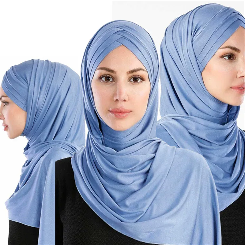 Хиджаб Женский, однотонный, шали из фуляра, 2019, готовый к носке, шарф из хлопкового трикотажа