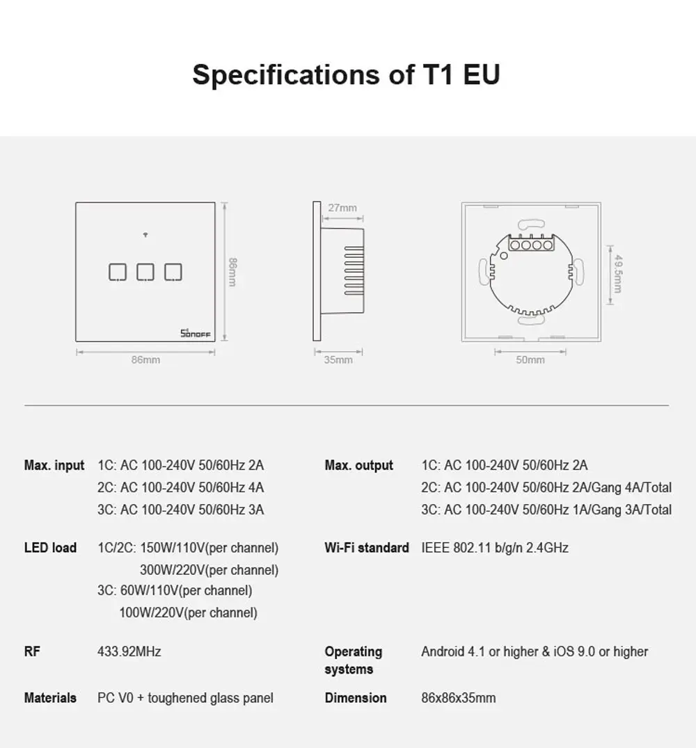 SONOFF Новый T1EU Wifi смарт-переключатель сенсорный экран Дистанционное включениевыключение 123 банда 433 МГц RFголосприложениесенсорное управление 86 Тип умный дом TX работать с Алиса