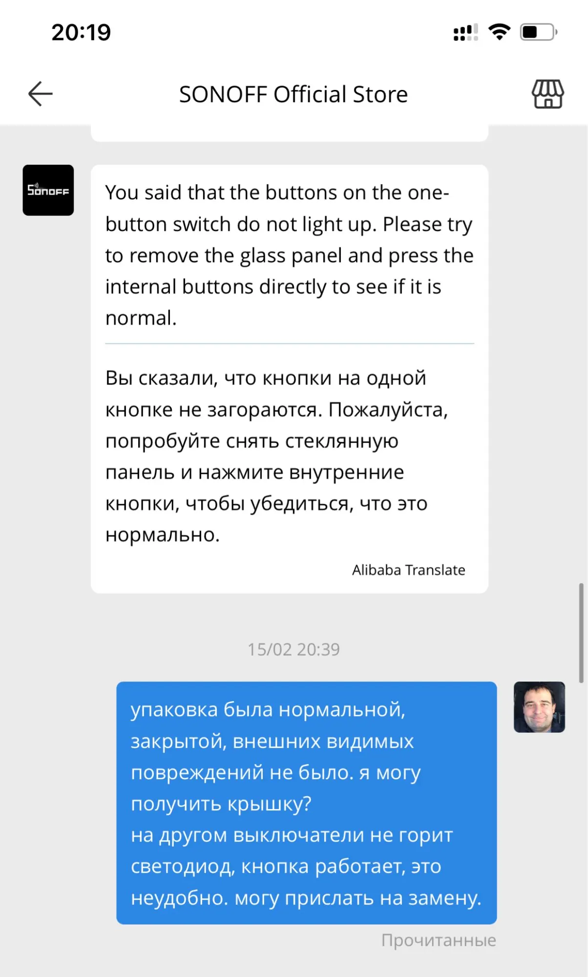 Продавец не в адеквате. Получил разбитый выключатель. Отправил десяток фото. Продавец отморозился. Ещё один выключатель не имеет подсветки. Третий включается на пятый раз. Качество отстой. Запросил частичный возврат денег, открыл спор, перед этим я предложил вернуть неисправный товар. Продавец тянет время и отказывает в возврате мотивируя, что по фоткам нельзя судить о повреждениях. Загрузил видео. Специально для всех прикладываю переписку.