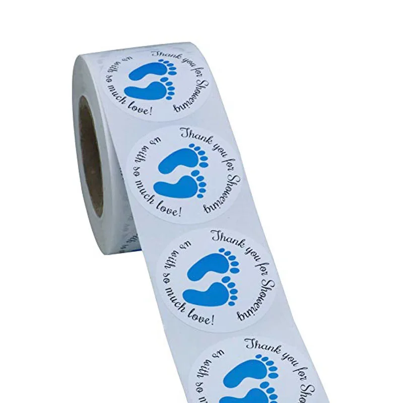 500 шт 1 дюймов круглые детские наклейки для душа, спасибо за душ с такой любовью голубая ножная печать канцелярские наклейки