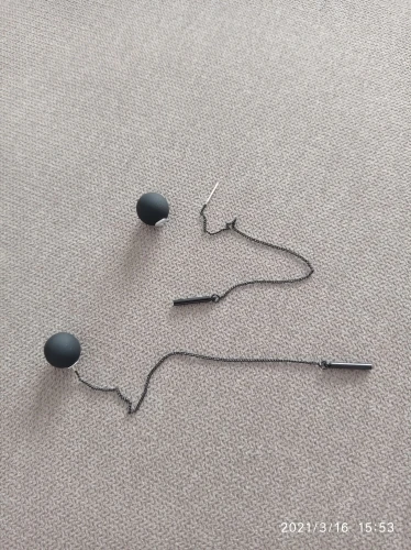 Выглядят аккуратно. Сначала не поняла, как эту толстую черную железку вставить в ухо, расстроилась и убрала их. Но потом проверила еще раз и из шарика можно вытащить тонкую часть и как раз ее и вставить в ухо и затем пропустить цепочку через прокол и вставить обратно в шарик. Пришли сильно спутанные, удалось распутать.