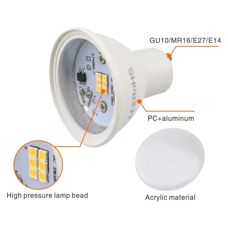 Светодиодная лампочка MR16 GU5.3 GU10 E27 E14, 4 шт., 6 Вт, 220-240 В