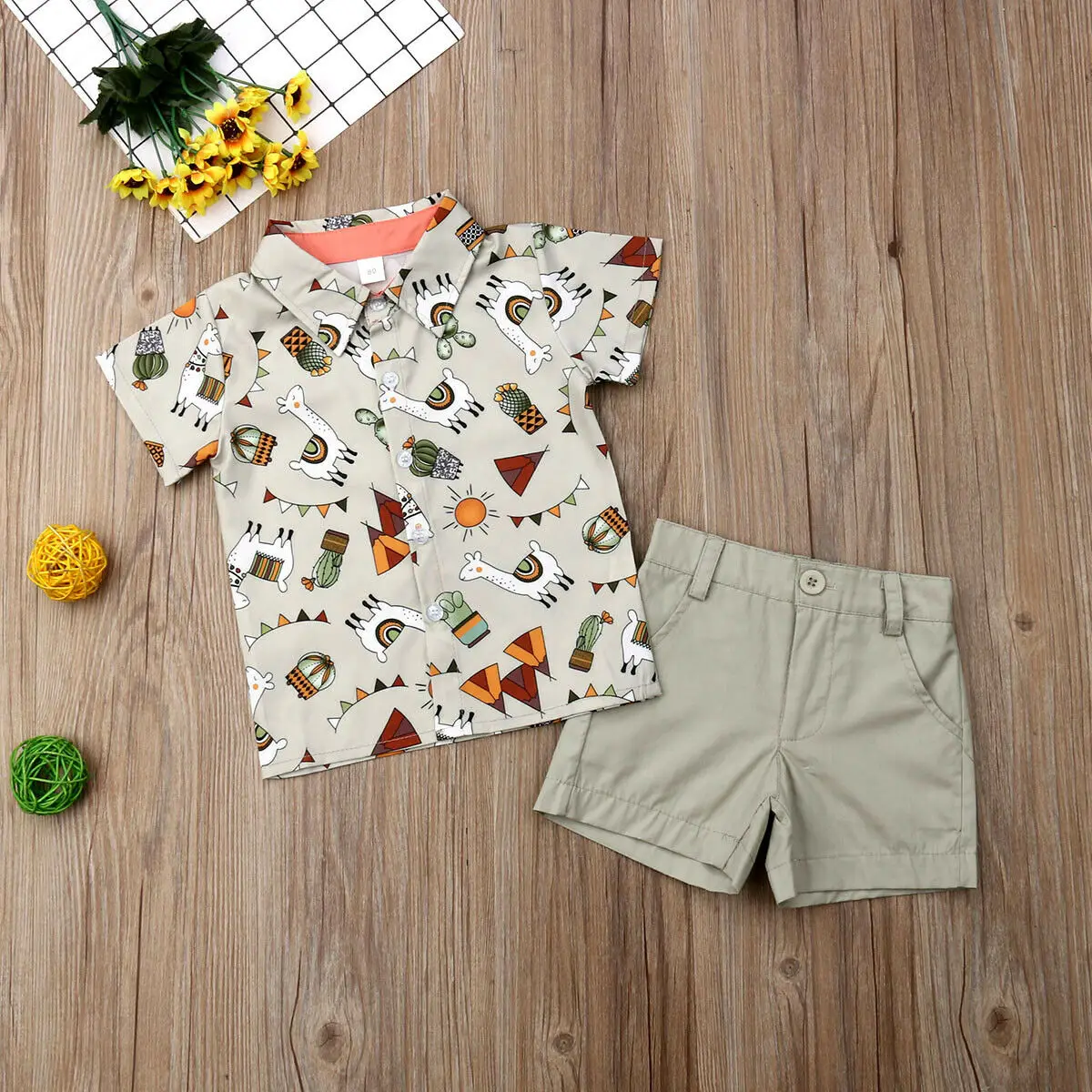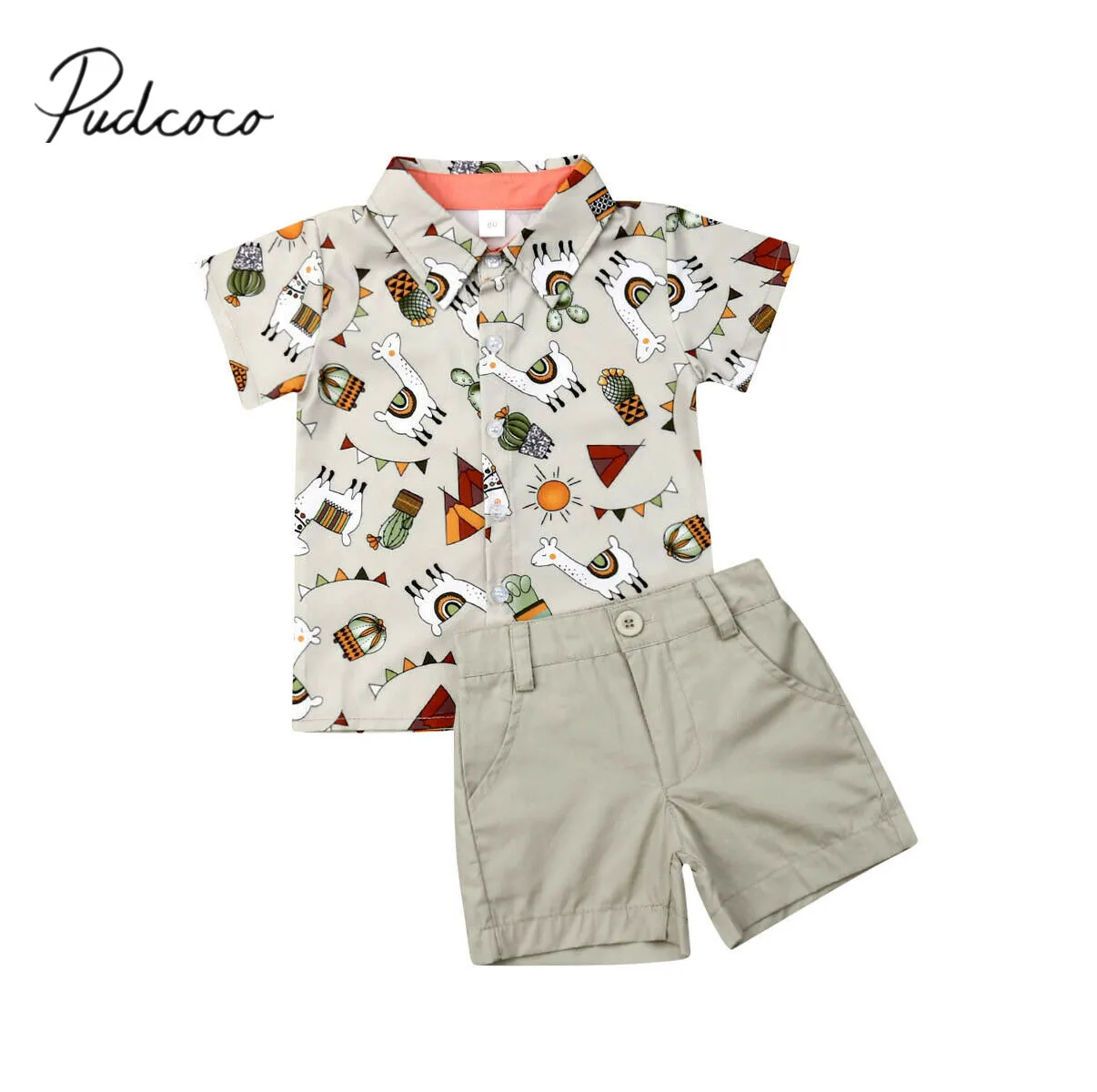 2019 Детская летняя одежда для малышей детей мальчиков Альпака Топы рубашка + шорты брюки джентльменский наряд Одежда 2 шт. комплект