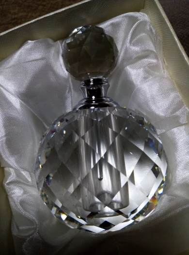 Флакон действительно красивый, тяжеленький, красиво отражает цвет. Пришёл очень быстро. Но, к моему большому сожалению, пришёл с трещиной возле горлышка и чёрными точками на некоторых гранях. Точки вроде как от окалины. Хотя просила продавца проверить, чтобы не было брака и трещин. Упаковано было очень надежно: в пупырку в несколько слоев, поэтому вряд-ли это произошло в дороге. Поэтому возврат. Открыла спор, надеюсь деньги вернут.