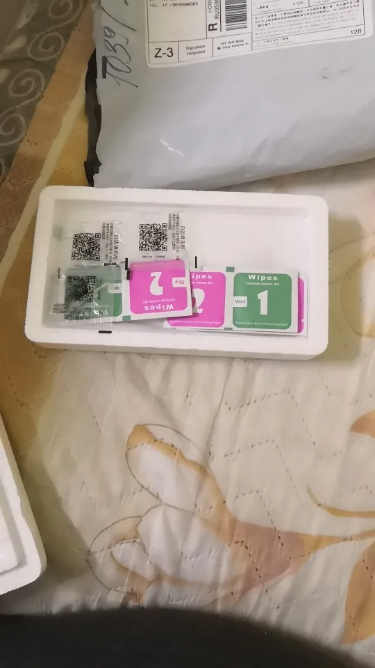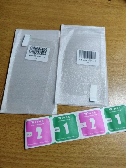 Доставка долгая, заказан товар в конце августа, пришёл в конце ноября почти. В комплекте 2 стекла, 2 комплекта салфеток и 2 комплекта какой-то жидкости, пока не знаю зачем она.