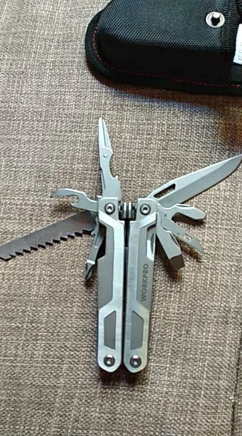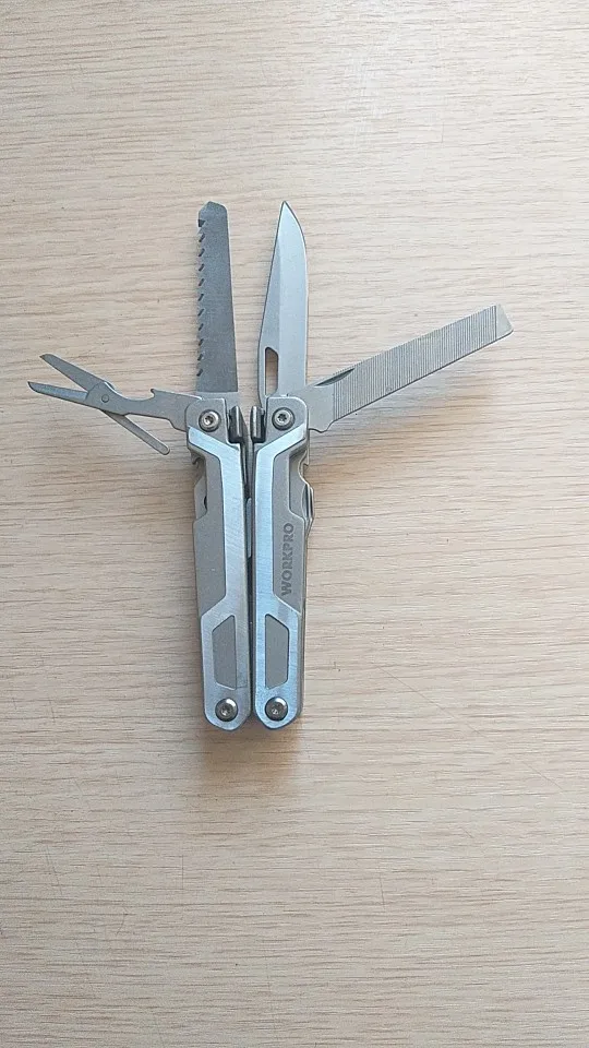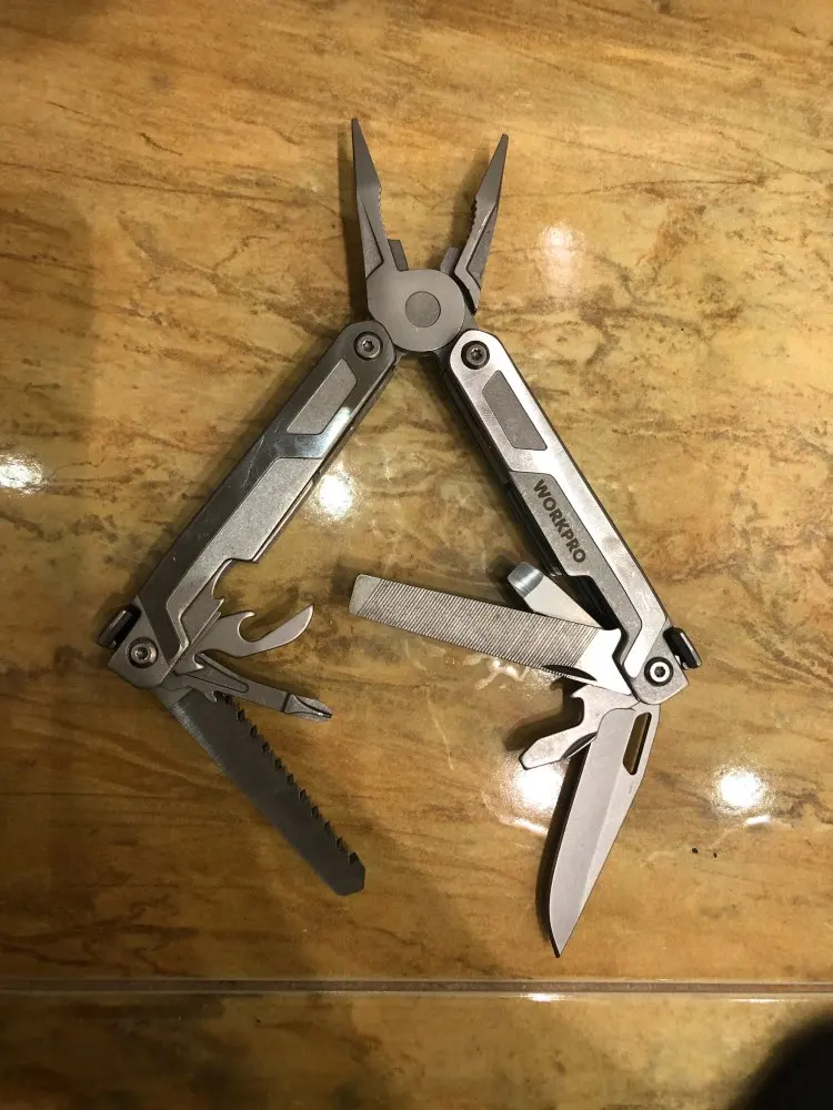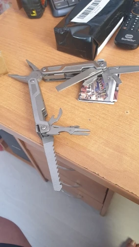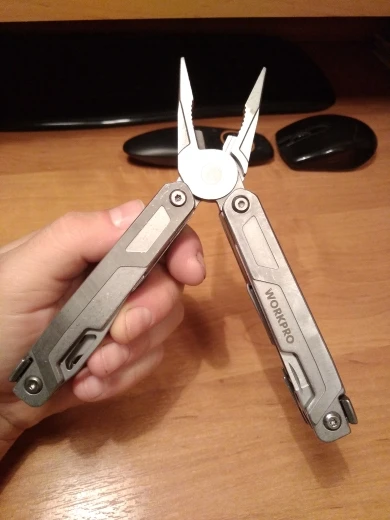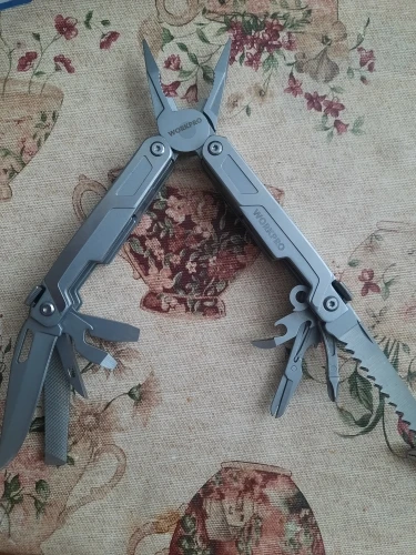 хороший мультитул, все сделано качественно, все инструменты фиксируются, заточены. пассатижи большие, для крупной руки, пружина сильная, сталь твердая, стружку с болта снимает, но скорее всего хрупкая. нож сыромятина но зато легко правится. напильник для мягких материалов, пила по дереву острая, но заточка косая "на себя". кусачки для тонкой проволоки, щёчки нес'емные. в общем за эту цену-лучший вариант.