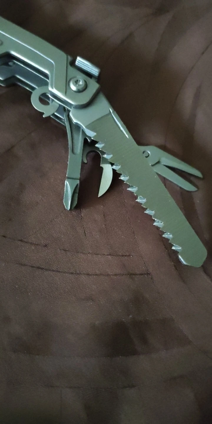 Выглядит как инструмент, а не игрушка. Большой плюс-это лопасть замка (не zlozyżто же самое во время эксплуатации) плюс плоскогубцы «отражаются». Лучший дешевый многофункциональный инструмент, который я увидел. Тяжелее и больше, чем волнистая кожа.