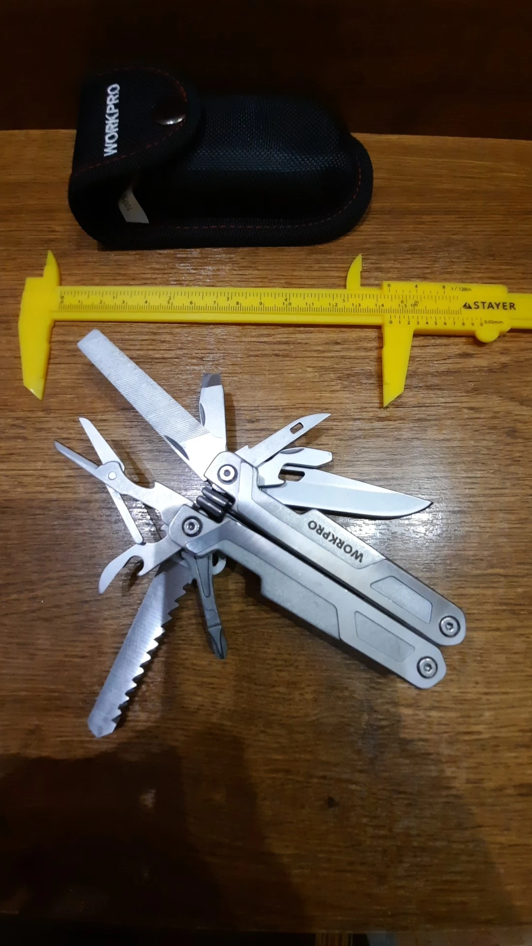 Нормальный тул за свою цену . К сожалению в моём случае сквозная трещина в пассатижах . Открыл спор деньги вернули . Рекомендую снимать распаковку на видео , при этом не упуская деталей . Продавец адекватный . Отпираться не стал . Деньги пришли на следующий день . Вид у тула не презентабельный . Можно критиковать за вес , заточку ножа , ножниц и т.д. Но я за эту цену аналогов не нашёл . Хорошо упакован . Доставили за 9 дней в Воронежскую обл. , считая от дня заказа .