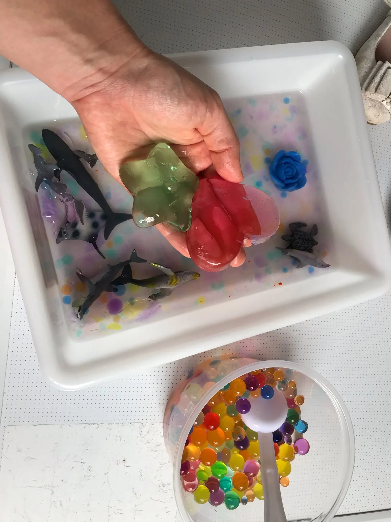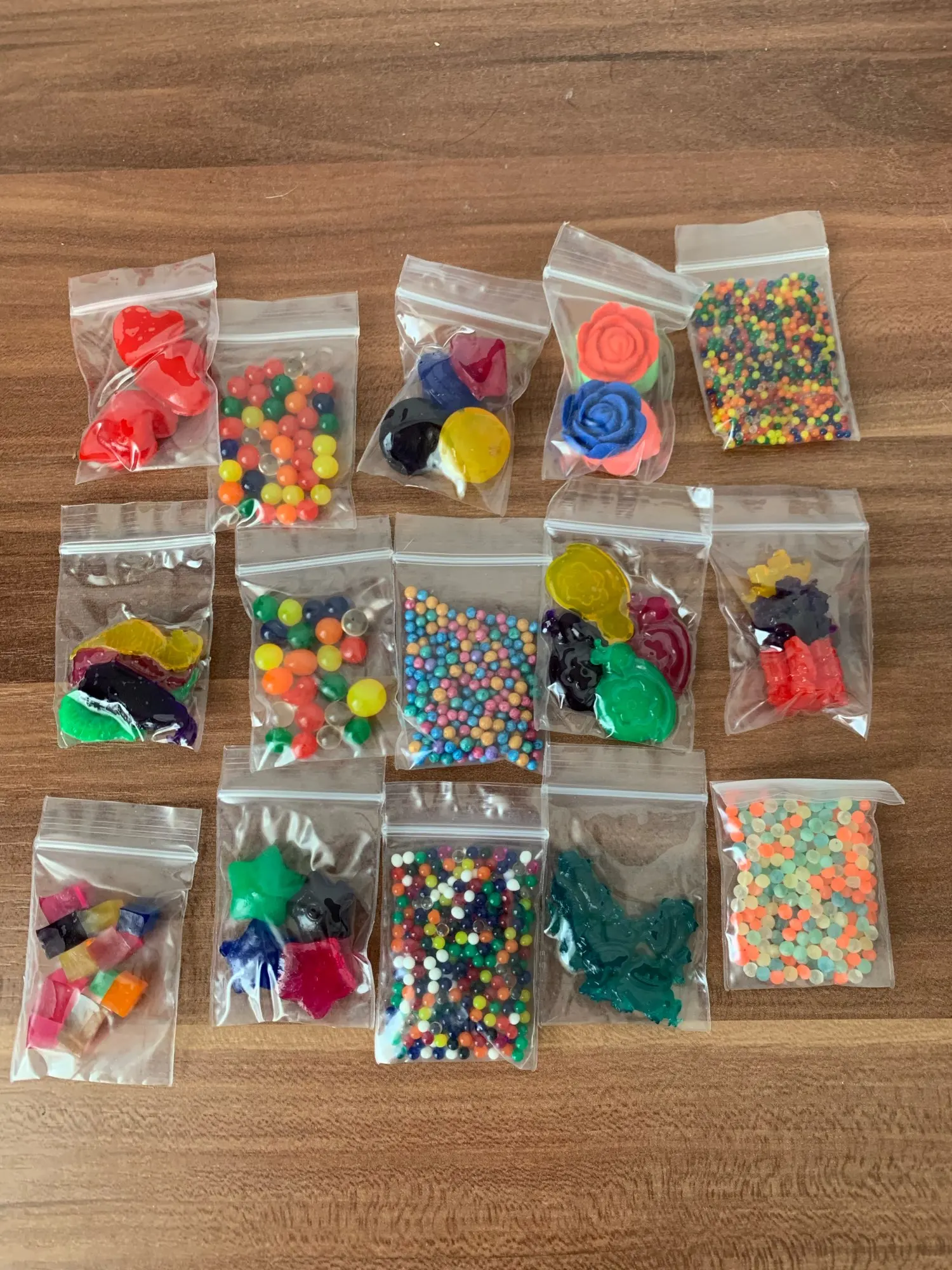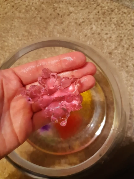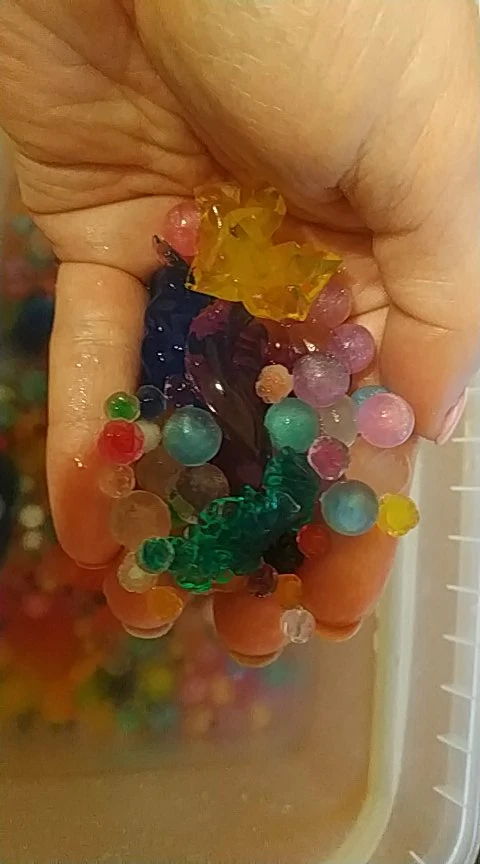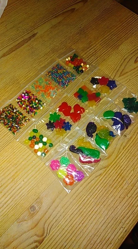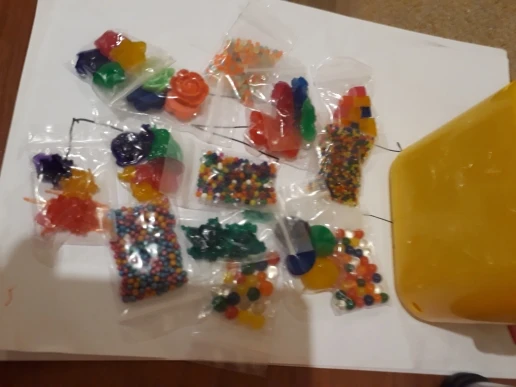 Орбизы прикольные. росли всю ночь) мелкие быстро выросли. Начинают рости не равномерно, но это особенность самих орбизов. В исходном состоянии "сухие" только шарики, "желейные" все фигурки, кроме розочек, розочки "губчатые". Розочка еще не полностью выросла, Заказом и продавцом довольны!