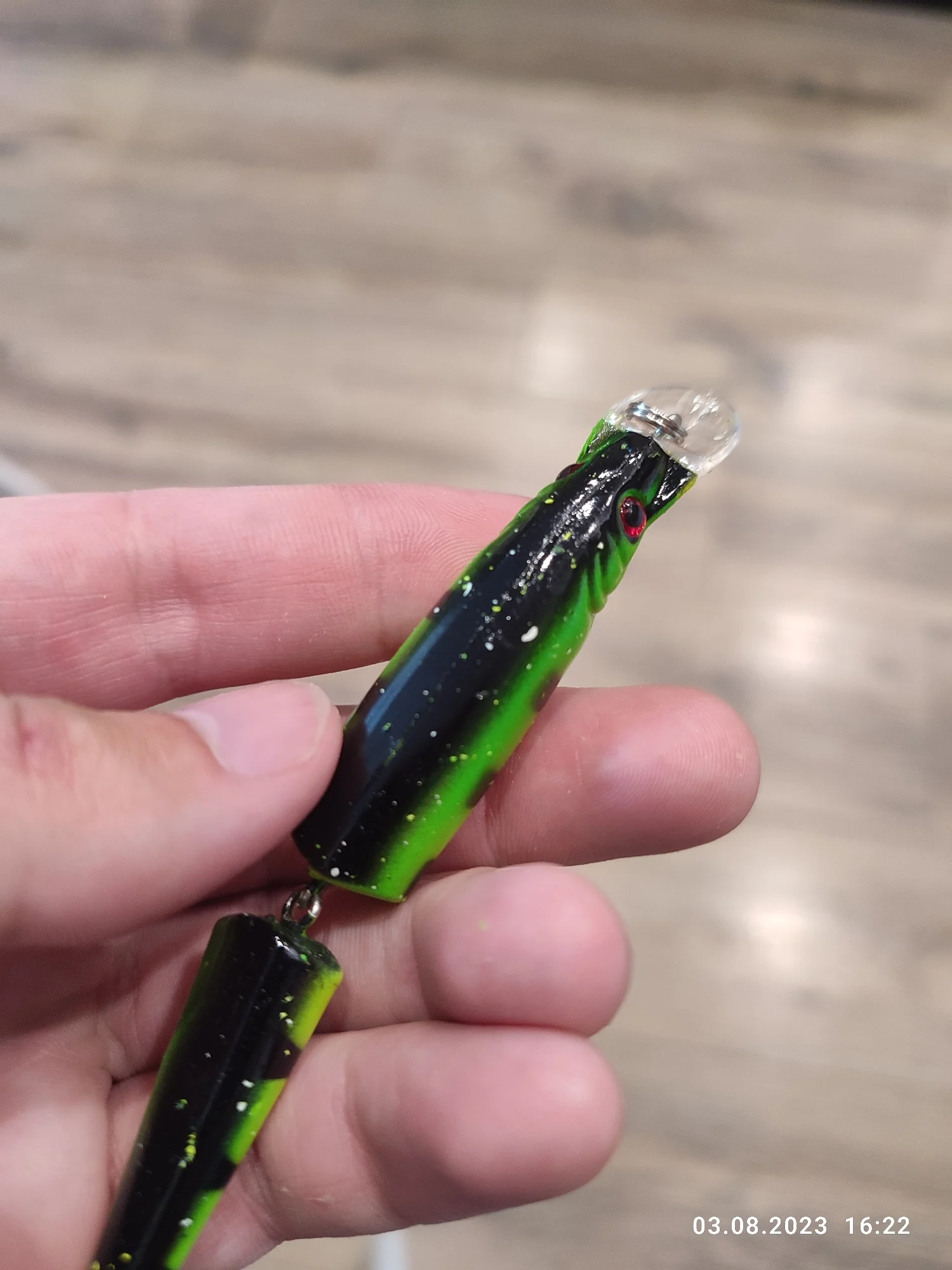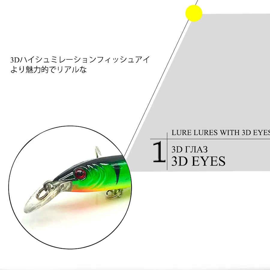 С ярким телом и 3D глазами, чтобы привлечь больше рыбы.