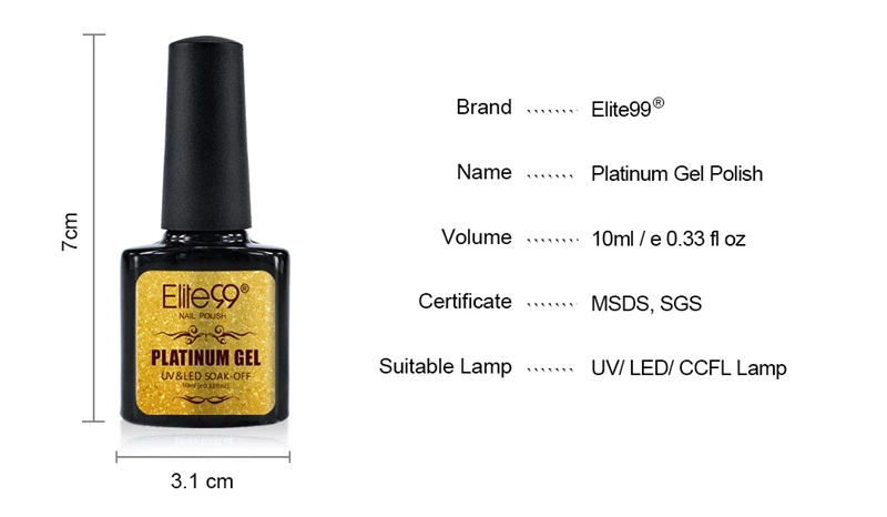 Посылка включает в себя: 1 x Elite9910 млГель-лак платинового цвета