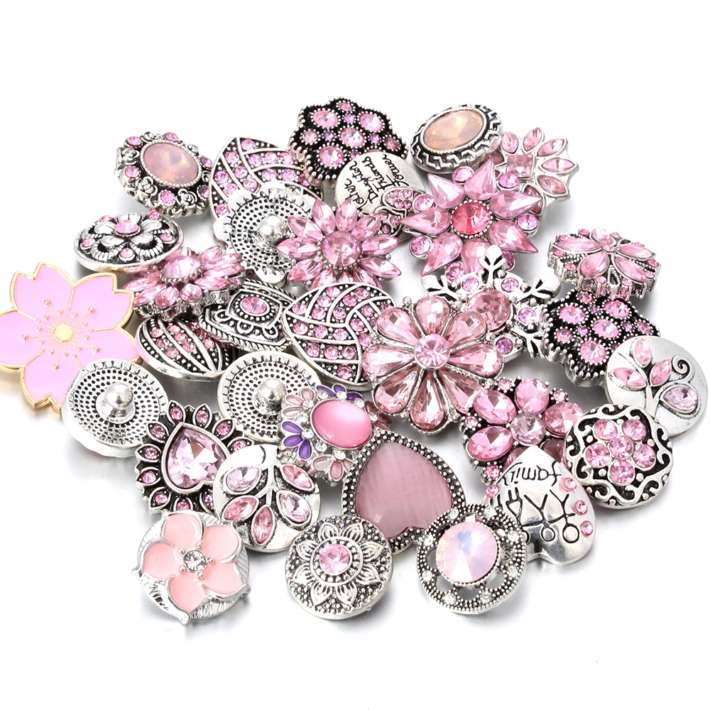 10 шт.лот оптовая продажа ювелирных изделий с застежкой смешанные фиолетовые стразы цветы металлические подвески 18 мм 20 мм кнопки ювелирные изделия для браслета с застежкой