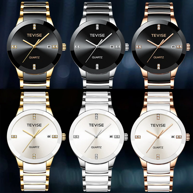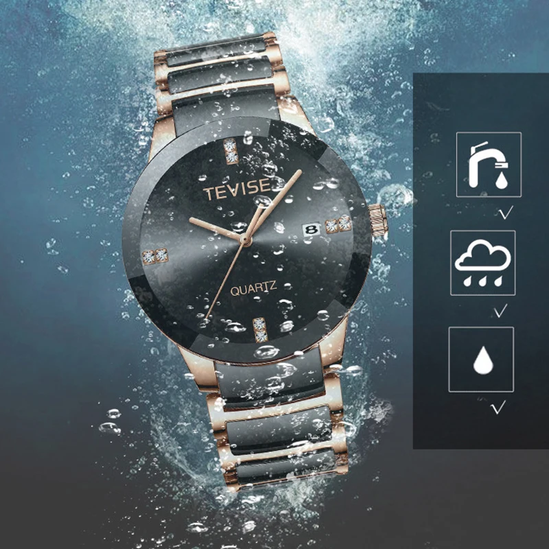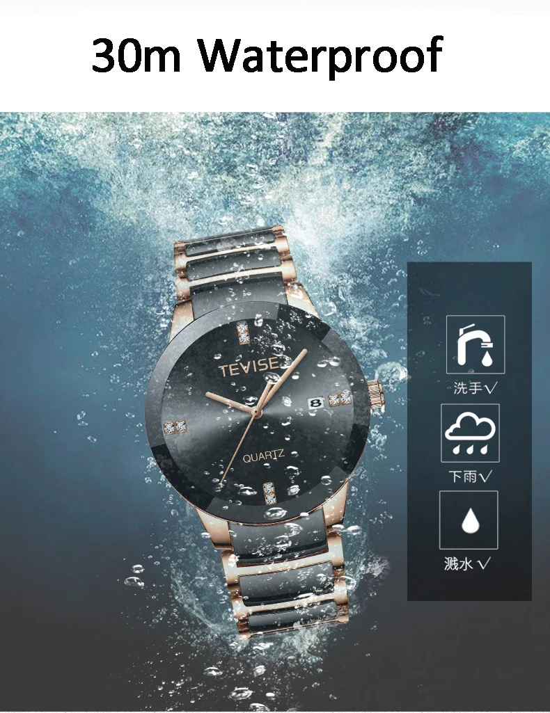 Часы Tevise Мужские кварцевые, брендовые Роскошные модные спортивные водонепроницаемые наручные, с керамическим ремешком