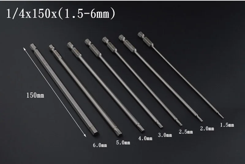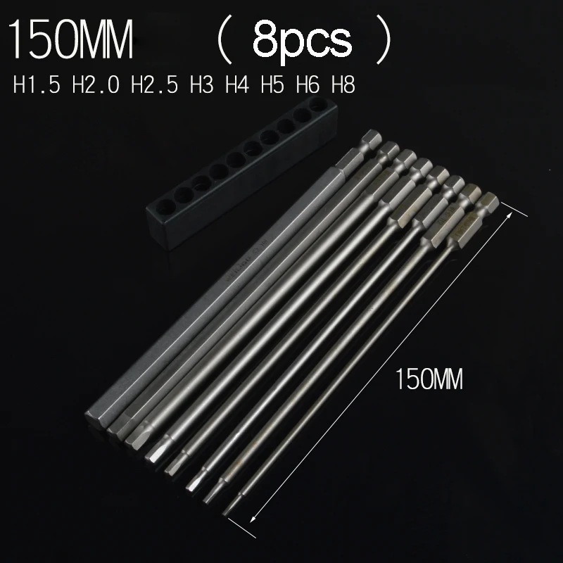 Набор инструментов для отверток, набор стальных магнитных инструментов с шестигранным хвостовиком 14 дюйма, 6,35 мм, длина 150 мм, H1.5 H2 H2.5 H3 H4 H5 H6 H8, 8 шт.лот