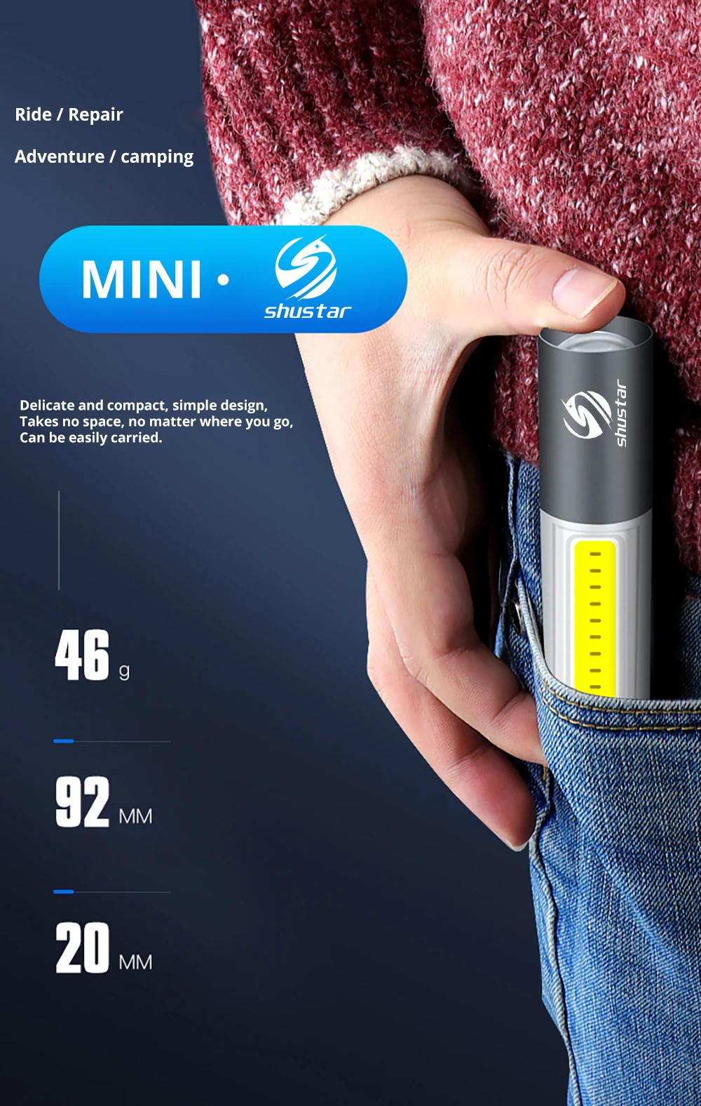 Фонарик, светодиодный, компактный, перезаряжаемый, водонепроницаемый, с 3 режимами работы