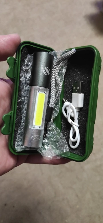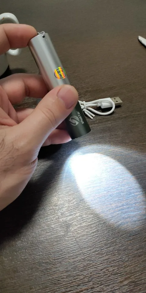 Светит не супер ярко, но за свою цену нормально. Пришёл немного покоцанный, в линзе какой то мусор, на свет не влияет, заряжается от usb, в целом доволен