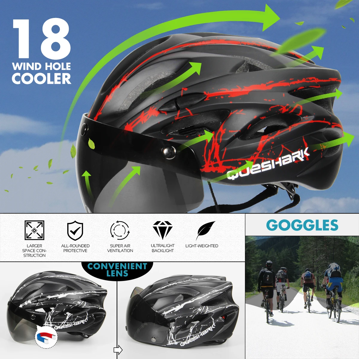 Сверхлегкий велосипедный шлем QUESHARK, для мужчин, женщин, мужчин, для горного велосипеда, шоссейного велосипеда, мотоцикла, съемные желтые цветные линзы QE111