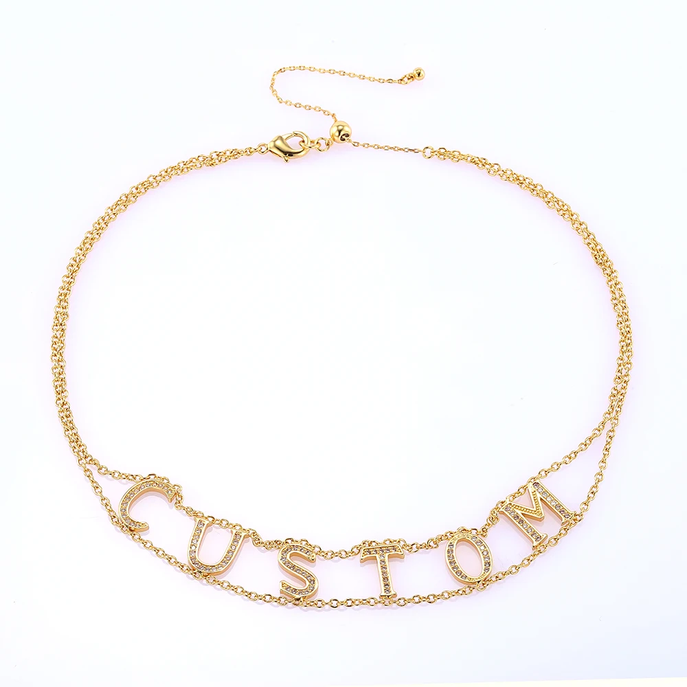 Lateefah двухслойная подвеска на заказ, Женская цепочка, циркониевые золотые ожерелья, индивидуальное имя, чокер, ожерелье, ювелирные изделия