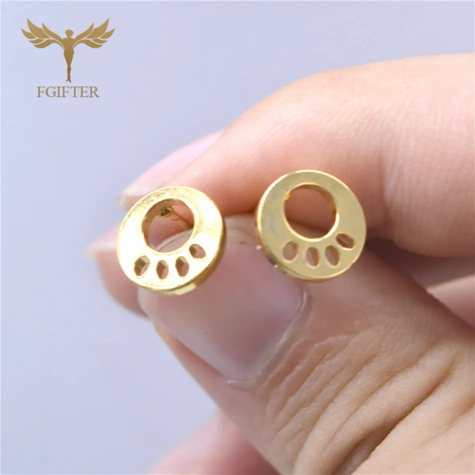 Милые детские подарочные серьги FGifter в виде медвежьей лапы, золотистые серьги-гвоздики из нержавеющей стали, детские ювелирные изделия, оптовая продажа