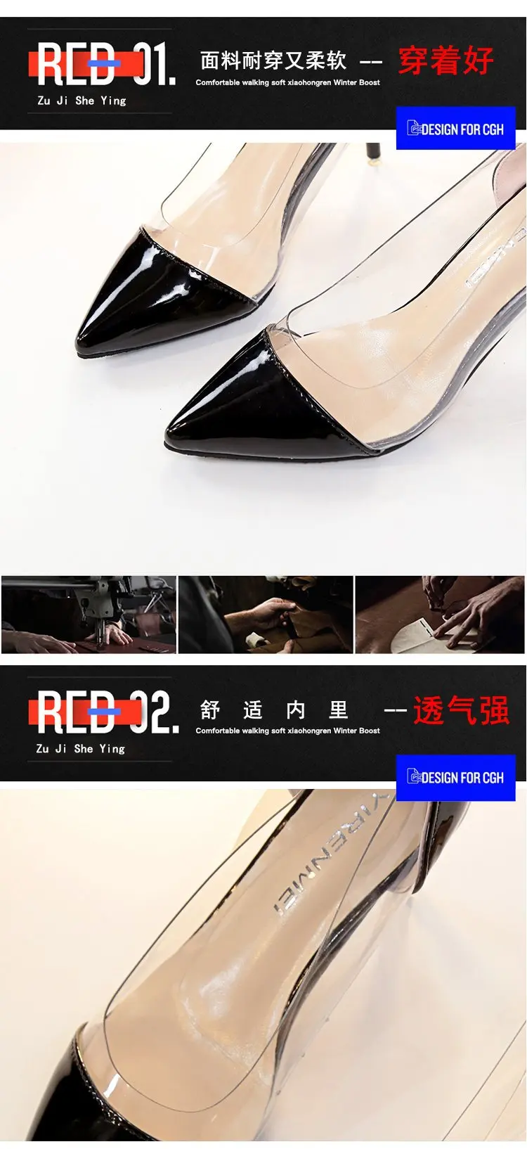 Женские туфли из кожи и ПВХ, на тонком высоком каблуке 8 см, размеры 34-39