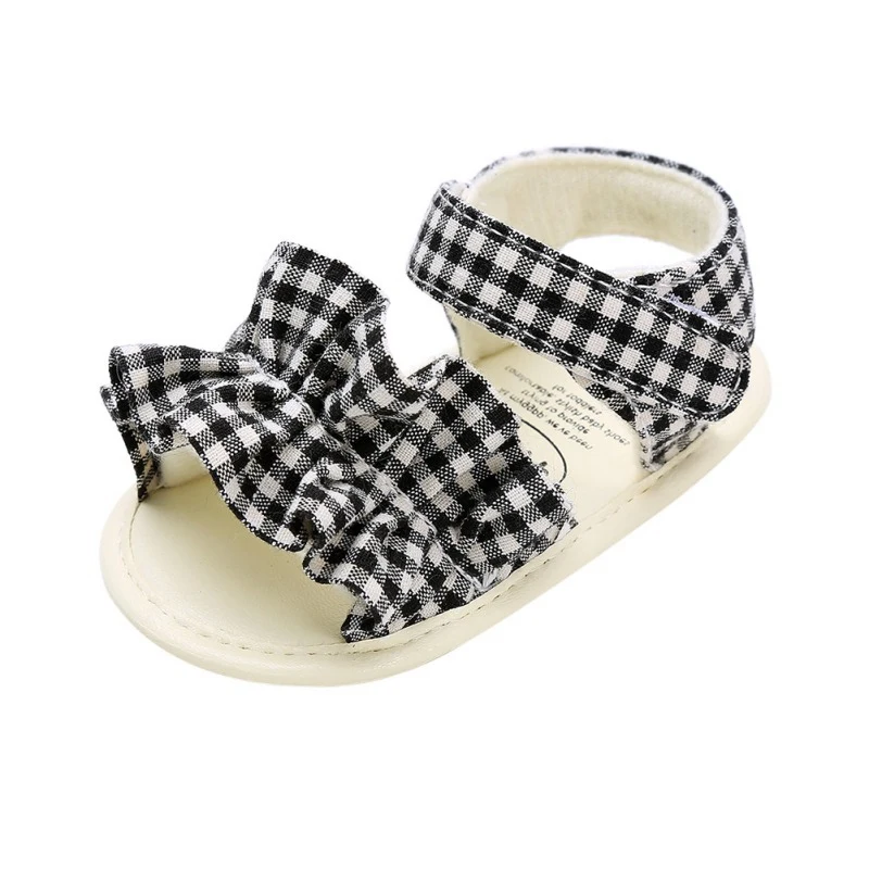 Сандалии детские клетчатые Нескользящие, дышащие, с бантом, пляжная обувь для начинающих ходить принцесс, летние