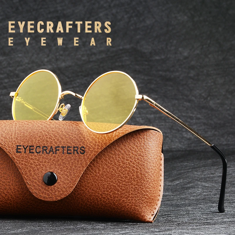 Солнцезащитные очки Мужские, женские, Круглые, Поляризованные, металлические, в стиле стимпанк