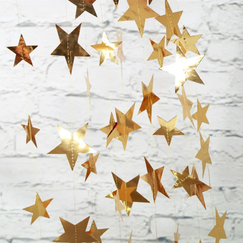 Свадебное украшение, 4 м, золотые, серебряные звезды, круглые бумажные гирлянды, украшения для детского дня рождения, рождественские товары для детей