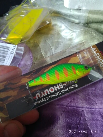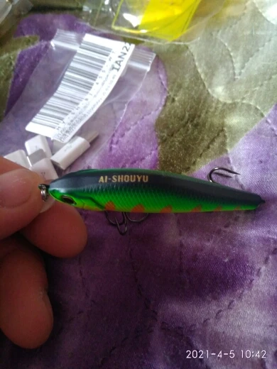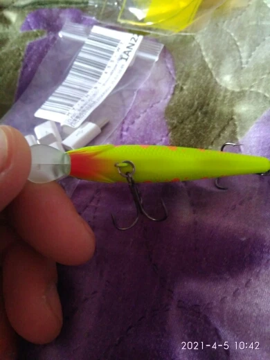 Интересная копия хамсина. Доставка почти 1,5 месяца. Посылка 3 раза заходила на границу и еле еле прошла... в посылке было несколько других посылок. Из за долго доставки снизил на 1 звезду. Воблер выложил у себя в блоге Жизнь одного рыбака, кому интересно заходите.