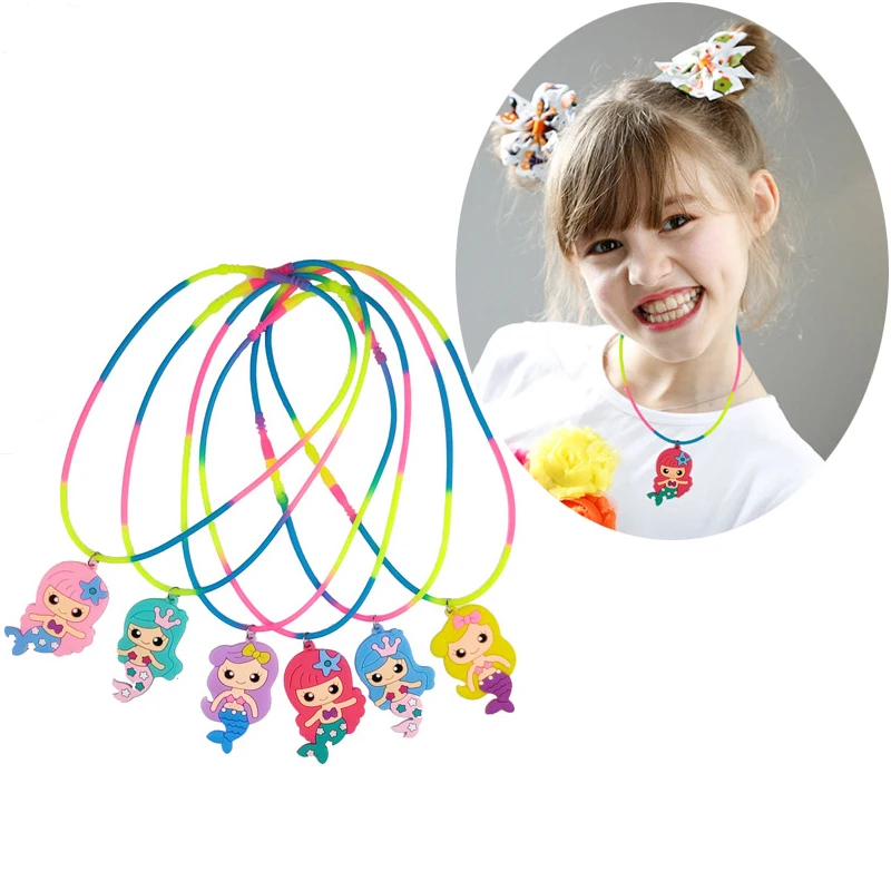 6 шт., вечерние платья Русалочки, ожерелья Русалка, заколка для волос, украшения для дня рождения, подарок для девочек, вечерние подарки для детей