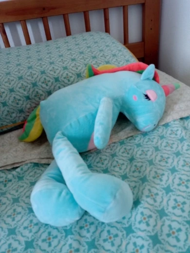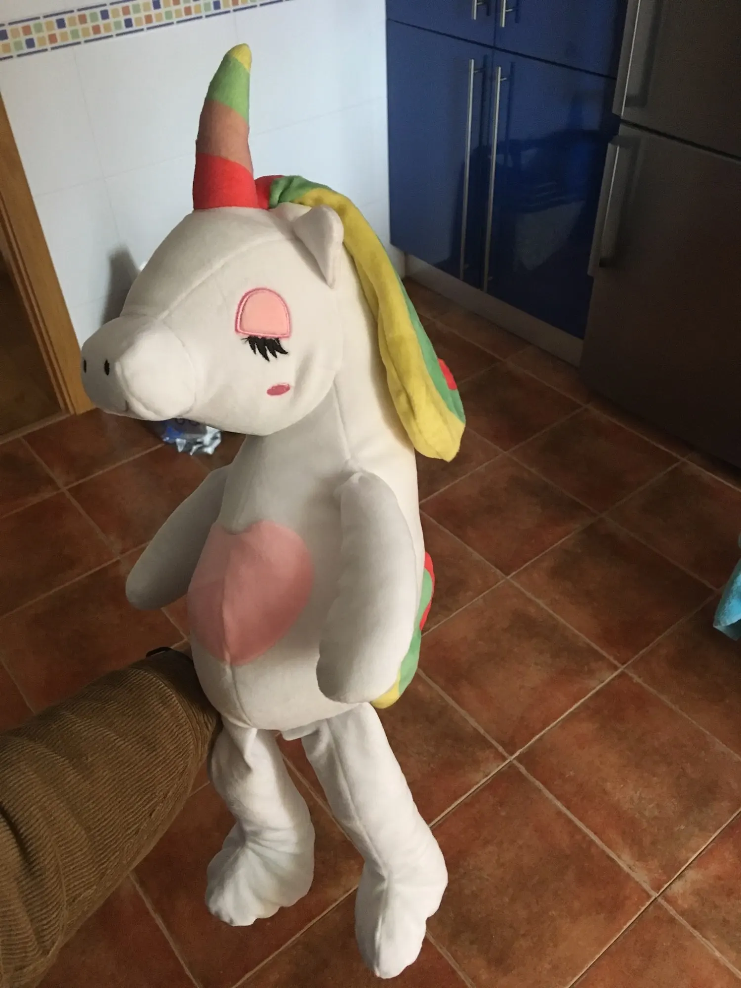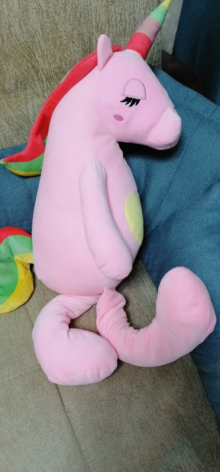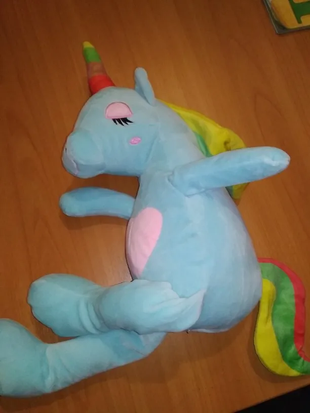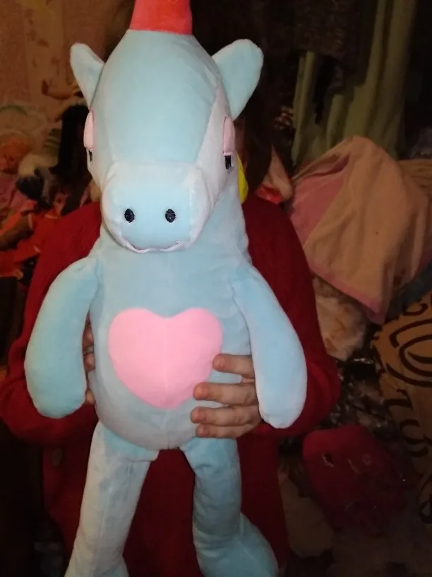 Единорог супер! Но продавец неправильно указывает длину. Вместе с рогом длина 130 см- это минус продавцу! Доставка до Москвы всего 11 дней! Пришёл в вакуумной упаковке в магазин пятёрочка .
