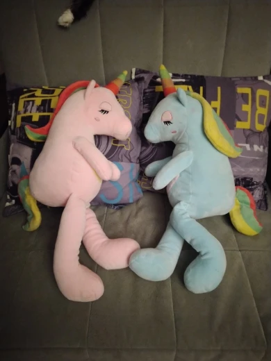 Заказывала единорога 60 см, при распаковке был неприятный запах, который быстро улетучился. Единорожка выглядит отлично, набит хорошо, швы ровные.