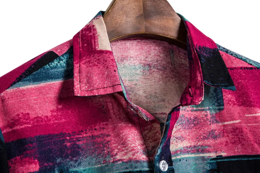 Мужская Этническая Повседневная хлопковая льняная гавайская рубашка с коротким рукавом и принтом