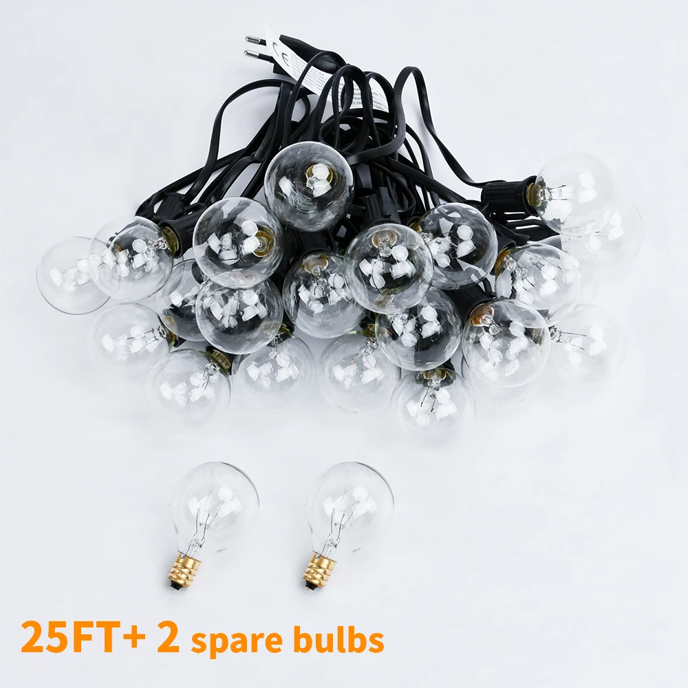 Гирлянда G40 с 25 прозрачными лампочками, комнатное рождественское уличное украшение для свадьбы