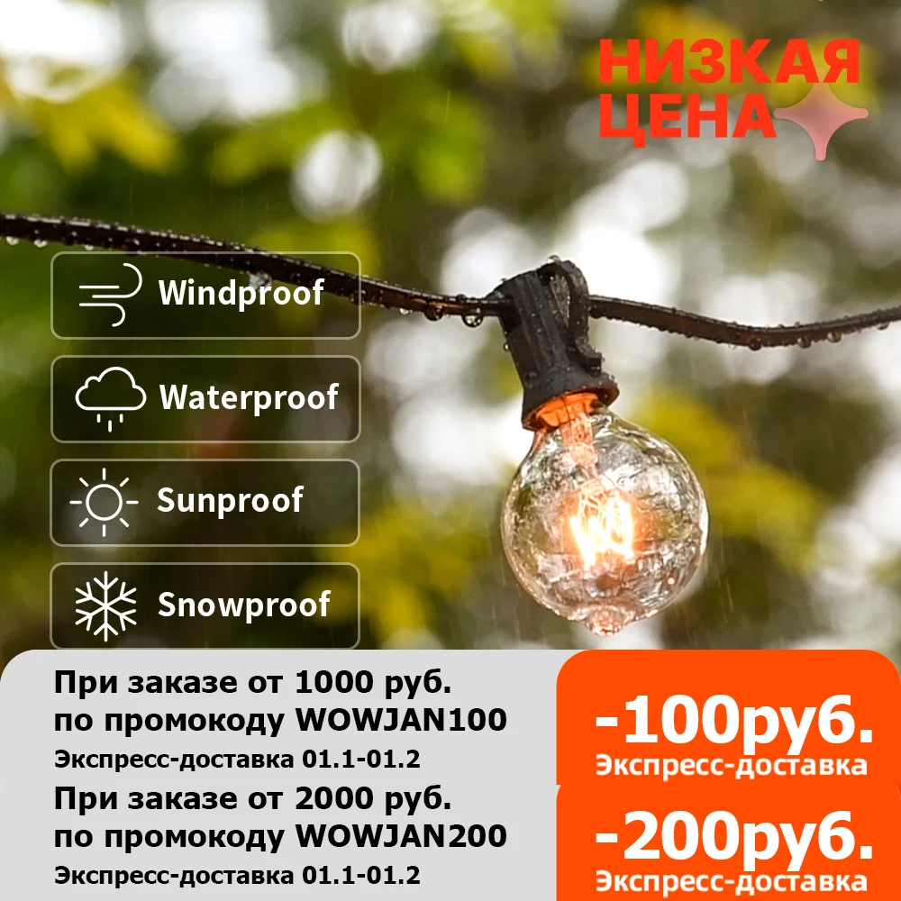 Страна: BY Emitting Color: 50FT 50Bulbs Ships From: CN Wattage: 220V EU Plug Доставка: Seller's Shipping Method 20.01.2021