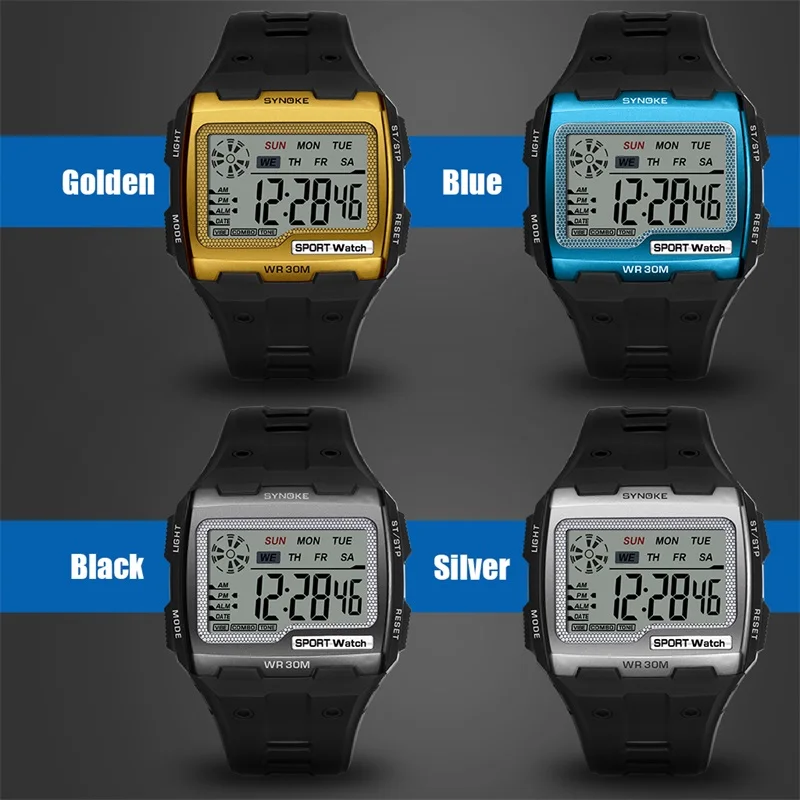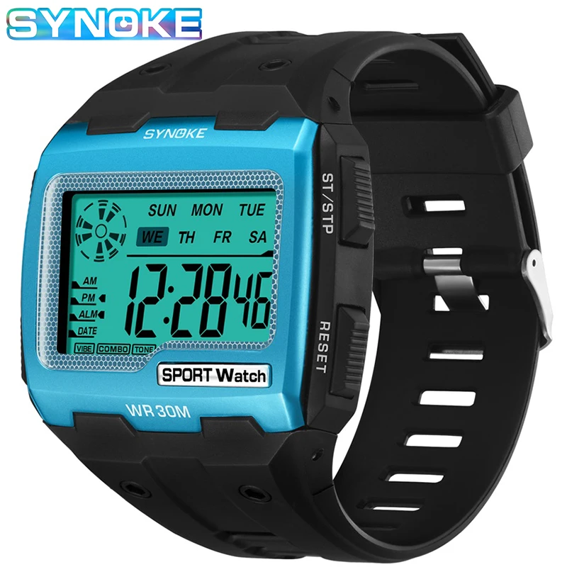 Мужские Цифровые часы SYNOKE с большим квадратным циферблатом и будильником