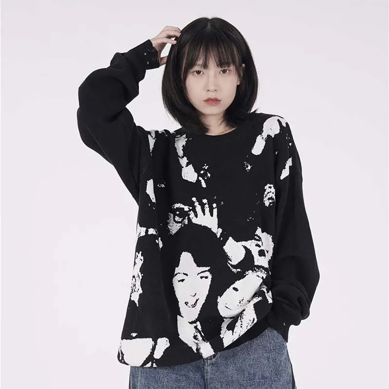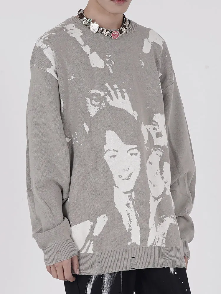 Мужской Жаккардовый свитер в стиле хип-хоп, с рисунком