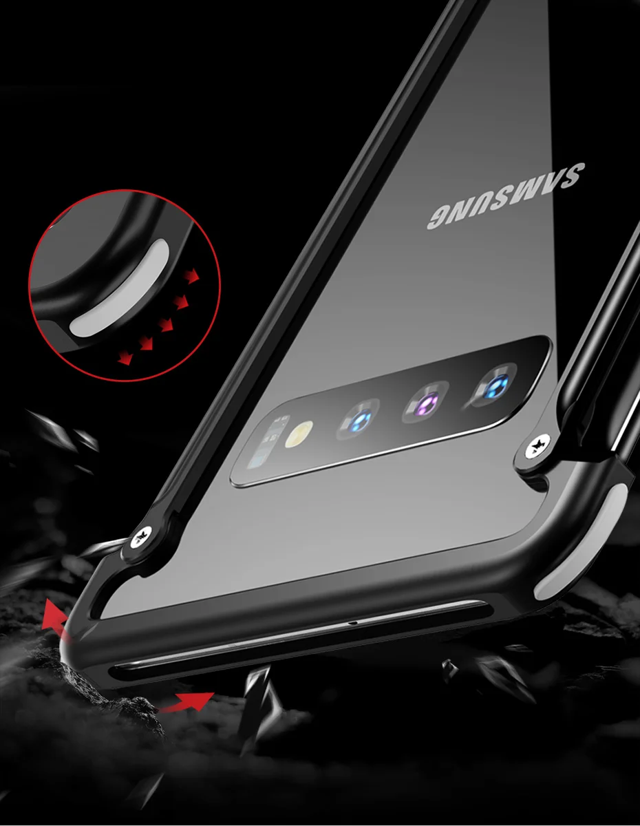 Стильный и качественный чехол (четко совпадает по размерам смартфона). Подобного ничего не видел. Как будет по практичности - покажет время. Отвёртка для винтов идёт в комплекте (также есть 4 запасных винтика). Внимание!!! Достать лоток сим, без снятия бампера, не получится (s10e)