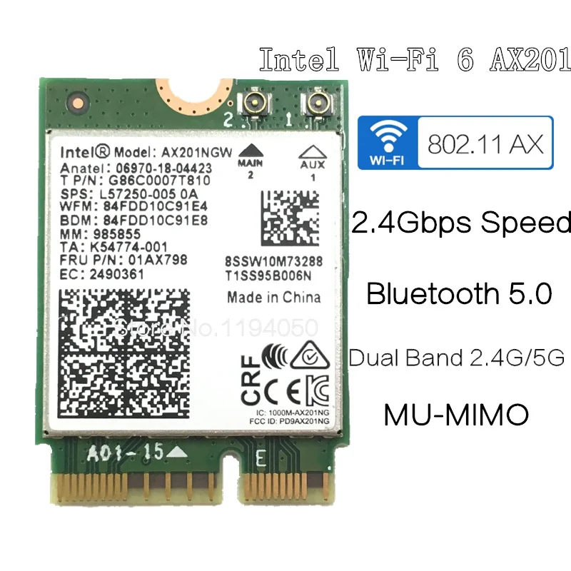 Intel Wi-Fi 6 AX201 Bluetooth 5,0 Dual Band 2,4G5G Wireless NGFF Button E CNVi Wifi Card AX201NGW 2,4 ГГц5G hz 802.11ac ax