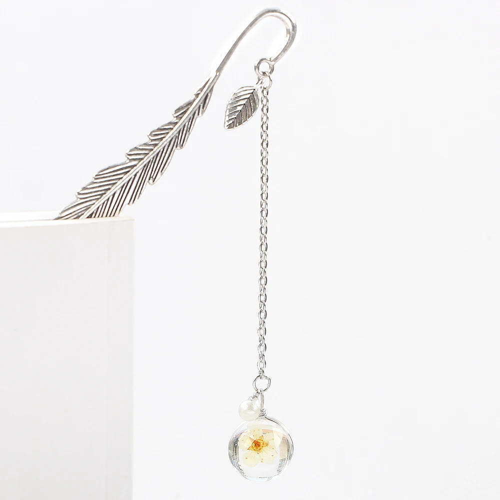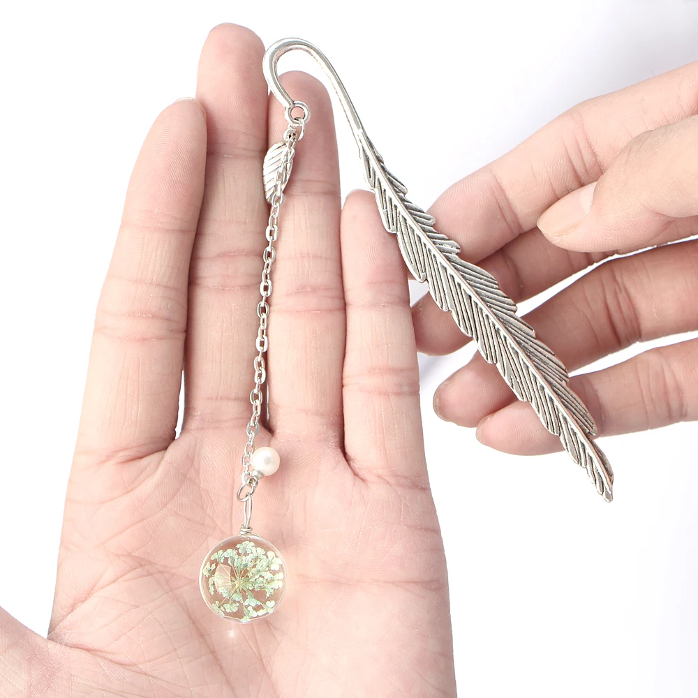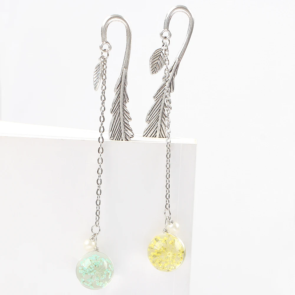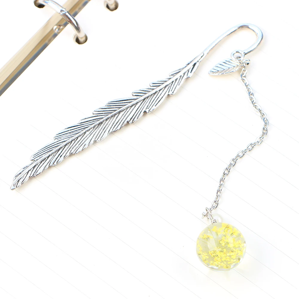 Закладка-образец из засушенных цветов, винтажная зажим для чтения металлическая маркировка пера, красивая подвесная кисточка закладки для книги