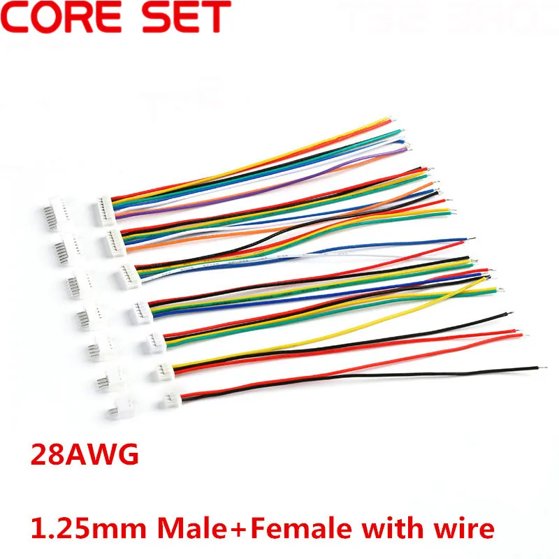 Набор из 10 соединителей штекерных и гнездовых кабелей XH 1,25 JST 2345678910 Pin, штекеры с 10 см электронными разъемами