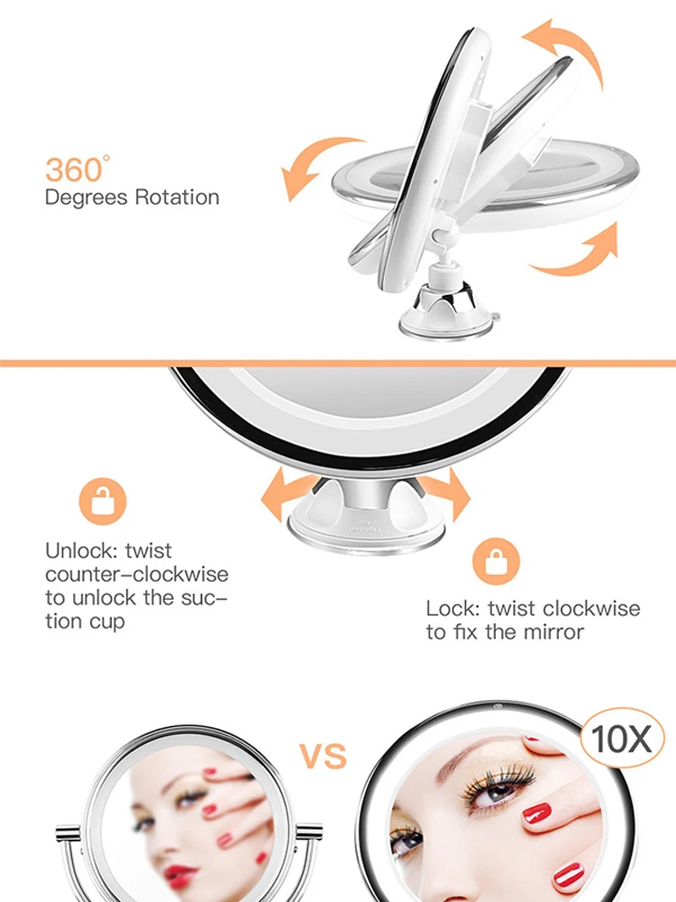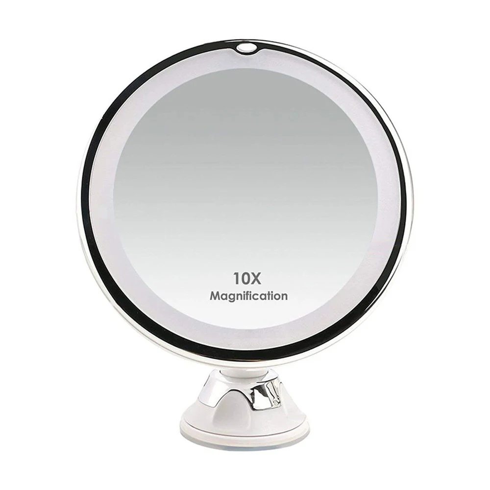 Зеркало для макияжа со светодиодной подсветкой и увеличением в 10 раз, портативное настольное с присоской на 360 градусов