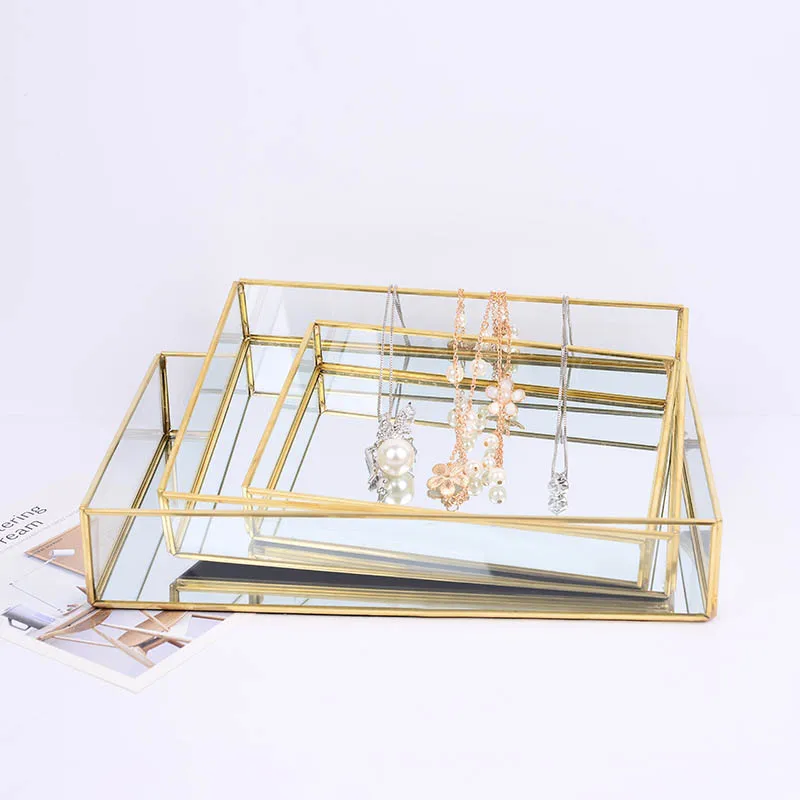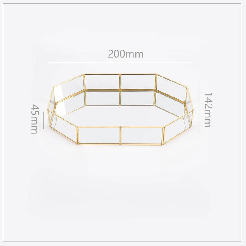 Латунный металлический поднос для хранения чая, роскошный стеклянный Золотой косметический держатель, многоугольная тарелка для фруктов, витрина для ювелирных изделий, для домашнего декора