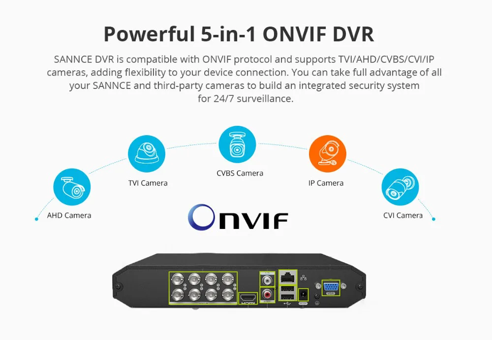 Система видеонаблюдения SANNCE, 8 каналов, 1080P Lite, DVR 5 в 1, 8X, 1080P