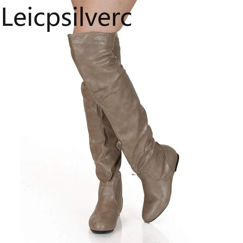 Женские сапоги выше колена, зимние, с круглым носком, на плоской подошве, большие размеры 34-48