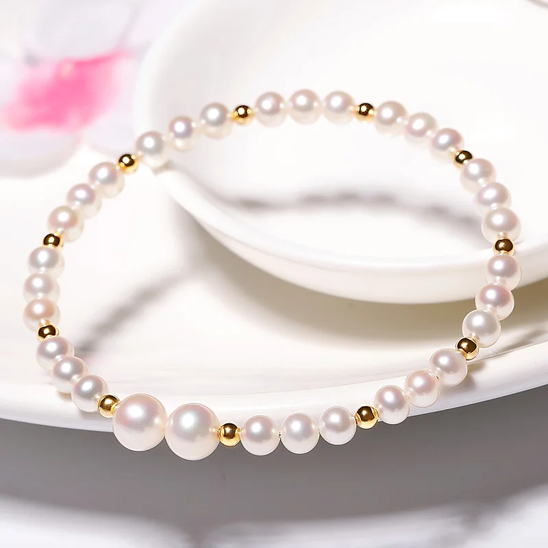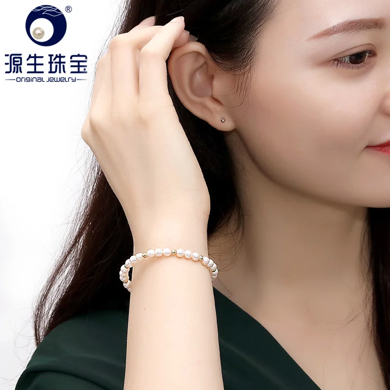 YS модный дизайн 18K золотой браслет 4-7 мм натуральный белый жемчуг китайский пресноводный жемчуг браслет ювелирные украшения