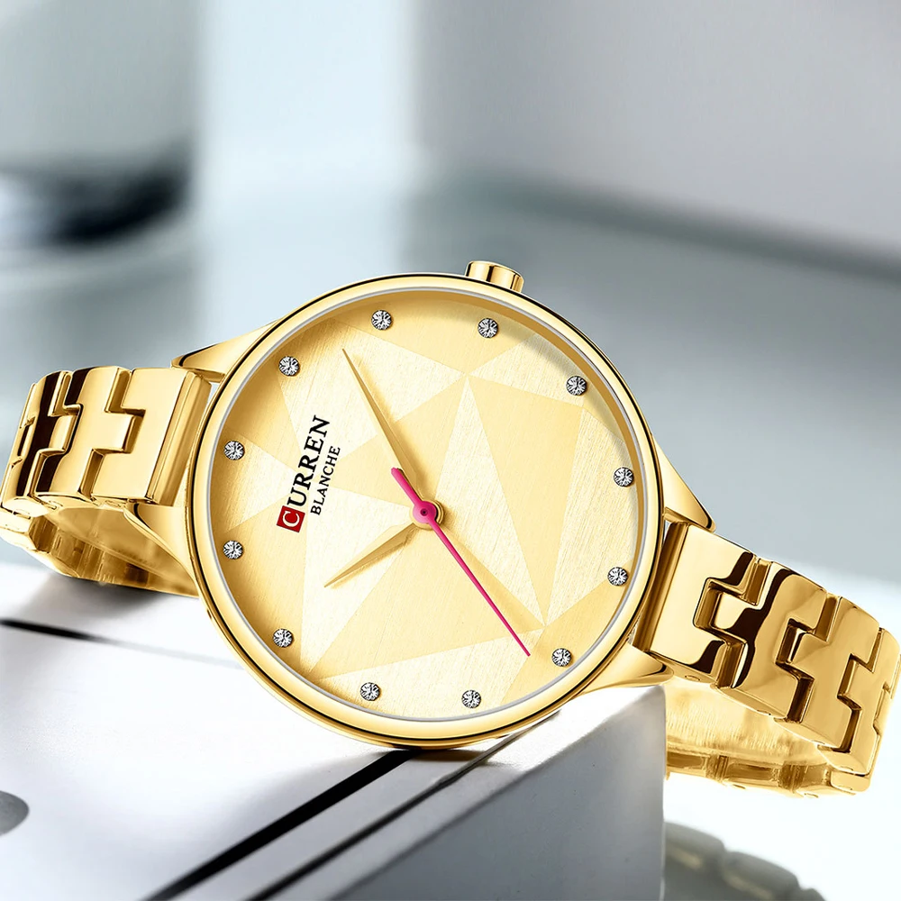 CURREN Стильные кварцевые часы для женщин Креативный дизайн наручные часы с нержавеющая сталь женские часы Женское платье браслет часы