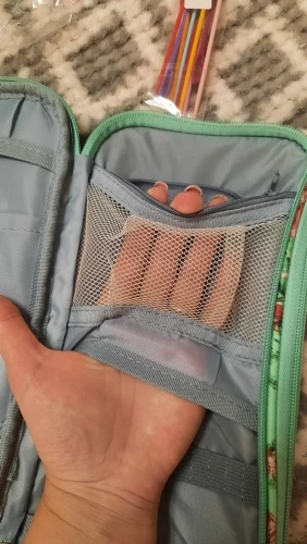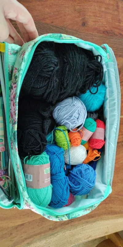 Сумка хорошая, вместительная, именно такую и хотела, есть дырочки, чтобы нить при вязании не запутывалась, хотя я больше покупала ее для упорядочивания пряжи и инструментов. Материал сумки плотный, замки работают, как часы, имеется ручка для переноски. Товар и продавца рекомендую.