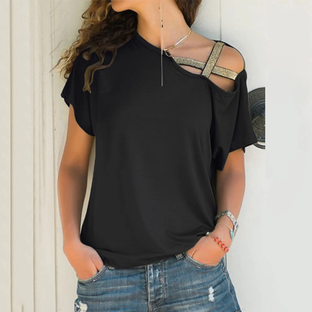 Женская Асимметричная рубашка на одно плечо с коротким рукавом, сексуальная женская футболка, свободные женские топы, Повседневная однотонная Летняя женская футболка