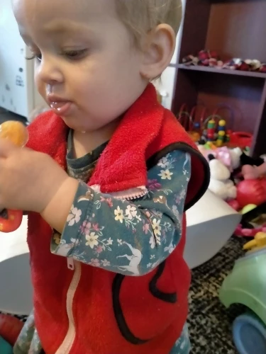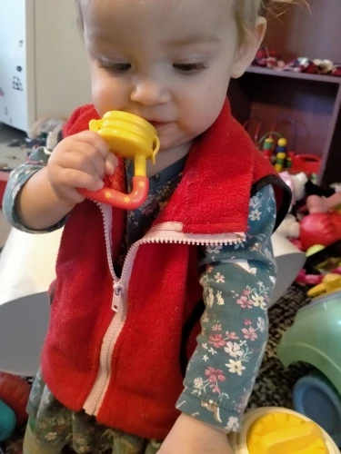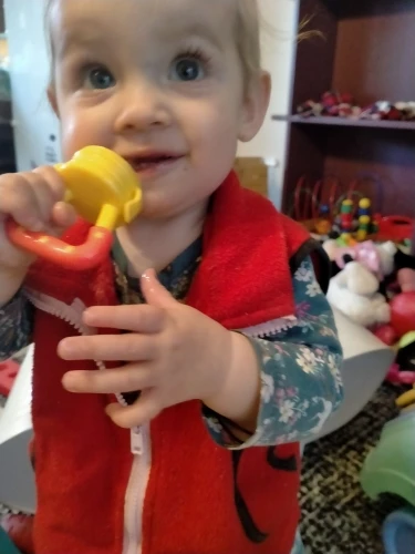 Ребенку очень понравился, отличный массаж десен, очень полезно для нее сжимать сок из фруктов. Не пустой, это главное. Нашим детям совсем не нравятся соски. Но эта вещь очень вкусная и идеально подходит для рта. Мы очень рады, мы даем ей жевать каждый день. Силикон быстро пачкается, окрашивается, но это совсем не проблема.